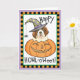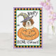Mande cumprimentos de Halloween com este cartão de uma linda bruxa Santo Bernard num sorridente Jack-o-Lanterna. Excelente para crianças de todas as idades que amam Santos e Halloween. Tenha um feliz HOWL-over!