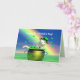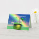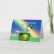 Cartão com minha trabalho de arte 3d de um gato branco piscando em um pote de ouro com pântanos voando por aí e um arco-íris brilhante. Texto diz "Feliz Rua. Dia do CATrick!"