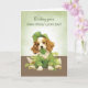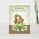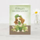 Celebrar Ruas. Dia de Patrick com a nossa adorável carta com uma charmosa panela vestida de verde, segurando uma pedra de champanhe na boca. Num pano de fundo de uma suave lavagem a aquarela verde, este doce filhote senta, capturando a essência do espírito irlandês. Perfeito por enviar desejos calorosos e momentos alegres aos seus entes queridos. A mensagem dentro complementa o visual, expressando sentimentos de amor filhote, alegria irlandesa e alegria sincera. Ideal para aqueles que apreciam cachorros bonitinhos com um toque de Rua.