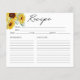 Cartão Rustic Chic Sunflower Chá de panela Recipie