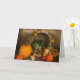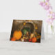 This Thanksgiving card features a beautifully arranged cornucopia overflowing with autumn harvest favorites—pumpkins, squash, apples, leafy greens, onions, and sweet potatoes. Rich fall leaves surround the basket, adding warmth and seasonal charm. Set against a textured brown backdrop, the scene highlights abundance, gratitude, and the cozy spirit of the holiday. The “Happy Thanksgiving” message at the top completes the design with a classic, welcoming touch.