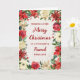 Feliz Natal para um cartão amigo com flores de aquarela rústicas e padrão de madeira vintage.