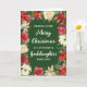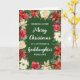 Feliz Natal para uma carta afilhada com flores de aquarela rústicas e fundo verde da floresta.