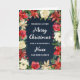 Feliz Natal para a sobrinha e seu cartão de família com flores rústicas a cores aquáticas e fundo azul marinho.