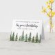 Cartão de aniversário feliz de pinheiros com cruz de aquarela. Personalizável