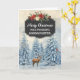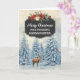 Feliz Natal para uma carta afilhada com um padrão rústico de quadro-negro do país e a cena da floresta com cor de neve com veados e aves.