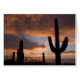 Lindo foto de um cacto Saguaro no pôr do sol impresso em cartões de saudação. Boa lembrança de Arizona. Foto criada no Parque Nacional de Saguaro.