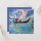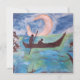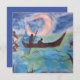 Junte-se à magia e mistério da navegação à lua com esta linda aquarela. Pintados em cores macios e pastéis, os dois viajantes intrépitos velejam em direção a um futuro mais calmo contra o fundo do céu noturno e uma enorme lua crescente. O verde, azul, marrom e prata se combinam para criar uma fotografia quente e bonita que iluminará qualquer lugar.