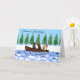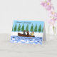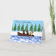 Cartão de Labradores de Canoagem de Natal para amantes de cães. Enquanto Labrador Retriever Ilustração apresentando cães Labrador Retriever que gostam de canoagem no rio frio de inverno... Eles estão vestindo chapéus de Papai noel. Criada por Naomi Ochiai.