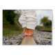 Pés-dançarinos equilibrando-se no caminho de ferro