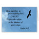 Pássaro voando através do céu azul, com Bíblia Verso de culto e elogio: "Quão inestimável é seu amor inabalável, Ó Deus! As pessoas refugiam-se na sombra das suas asas. Salmo 36:7"