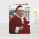 Trump vestida como Papai Noel está segurando um saco vermelho cheio de presentes, parado em frente à Casa Branca em um cenário de neve. O texto pode ser alterado.