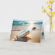 Uma mensagem em uma garrafa está em uma praia arenosa com ondas e um dentro de anotação lê "Salvar a Data". Todo o texto é editável.