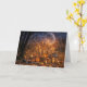 Cartão Samhain com uma espécie de imagem mística das velas e uma lanterna com folhas de outono e uma lua.