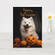 Mande sorrisos e alegria de Halloween com nosso cartaz amoroso Samoyed, projetado para trazer alegria e riso à celebração assustadora de qualquer um.