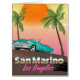 San Marino Los Angeles vintage style impressão poster de viagens. Uma bela poster de viagens de um carro americano clássico no pôr do sol do crepúsculo à noite.