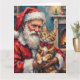 Cartão Santa Claus Holding Maine Coon Cat Christmas Art