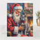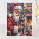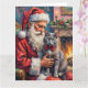 Cartão Santa Claus Holding Russian Blue Cat Christmas Art