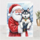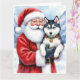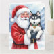Cartão Santa Claus Holding Siberian Husky Christmas Art