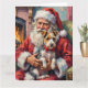Cartão Santa Claus Holding Wirefox Terrier Christmas Art