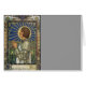 Joana d'Arc, o mártir francês numa posição de oração. Imagem de vidro colorido.