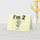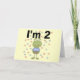 Um adorável design de segundo aniversário em T-shirts, cartas, adesivos, ímanes, sacos de tote e mais com um sapo verde segurando um fosco azul e um texto que diz "Eu tenho 2".