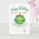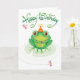 Faça sua atitude anfíbia com esta sapo numa almofada de lírio olhando para uma fatia de bolo de aniversário na frente dele. Envie isso para qualquer um que ame sapos e os deseje diversão!