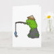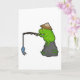 Cartão Sapo na Pedra Pescando com Linha de Pesca e Peixe