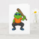 Cartão Sapo no beisebol com taco de beisebol e óculos de