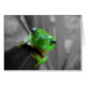 Sapo verde brilhante sobre fundo preto e branco posando para a câmera.