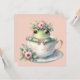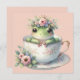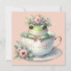 Cartão Sapo Whimsic na Placa de Saudação Floral Teacup