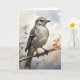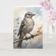 Sassia-de-pescoço-branco empoleirada em um galho de árvore cercada por folhas pálidas bonitas. Cartão de cumprimentos em branco para aniversário, aniversário de casamento, novo bebê, agradecimento, condolências, etc.
