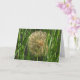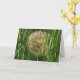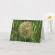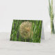 Puffball. Feche um dandelion castanho como uma bolinha na grama verde. Na dentro - "Faça um desejo - Feliz aniversário!"