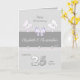 Este cartão de aniversário de casamento prateado, pode ser personalizado com as suas próprias palavras para o casal feliz, para celebrar juntos os seus 25 anos. O esquema principal é prata, mas tem um toque de púrpura, lilás e borboletas
