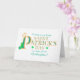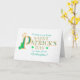 Um elegante cartão de saudação de Dia de São Patrício para a sua afilhada, com uma inscrição decorativa esboçada em cor dourada, preenchida com um padrão verde e decorada com aglomerados de camarões. A saudação do cobrir é "Desejando a você um feliz DIA DE SAINT PATRICK para uma Godchild muito especial!", tudo sobre um fundo branco ligeiramente texturizado. A mensagem dentro é apenas uma sugestão e você pode alterá-la facilmente ou apagá-la completamente, se desejar.
