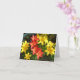 Belo conjunto de lírios amarelos vermelhos e vibrantes com folhagem verde desenhada com cartão de saudação dobrado, versado e impresso em cor vibrante. Envie esses pensamentos especiais a todos os seus amigos e familiares. Disponível em tamanhos e tipos de papel diferentes para a personalização.