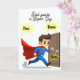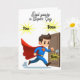 Seu pai é seu super-herói? Imagine um super-herói vestindo um terno azul e uma capa vermelha—perfeito para o Dia dos Pais ou cartão de aniversário. Adicione explosões de estrelas e palavras humorísticas em estilo quadrinhos para personalizar como desejar.