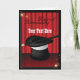 Uma ilustração gráfica do chapéu de mágico com fundo de cortina vermelha pelo artista/designer Charmaine Paulson num cartão de saudação personalizado. O cartão tem modelos de texto para sua personalização. ©2013charmanepaulson