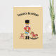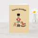 Belo cartão de feriado com pregador, ursinho de peluche e cavalo de balanço e personalizar/personalizar texto