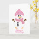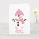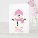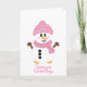 Cartão Saudações da Estação de Snowman, cor-de-rosa,