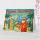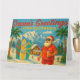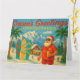 Traga o brilho da Califórnia para as festas de fim de ano com este cartão divertido e festivo! Papai Noel, de óculos escuros e camisa havaiana, aproveita a cena de praia de inverno com pranchas de surfe decoradas, palmeiras e montanhas cobertas de neve. Uma cabana aconchegante e coberta de neve adiciona calor à mistura divertida. Ideal para surfistas, amantes da praia ou qualquer um que prefira o Natal com um toque de alegria costeira.