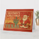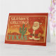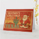 Celebre o Natal com um toque do Texas! Este cartão de Natal em estilo retrô apresenta um Papai Noel alegre acenando ao lado de um cacto decorado com enfeites vermelhos, contra um pôr do sol desértico e quente. Com vibrações de cartão-postal retrô e tipografia ousada de “Saudações de Fim de Ano do Texas”, este design traz charme do Sudoeste para seus votos de Natal. Perfeito para enviar amor da Estrela Solitária e alegria festiva por milhas.