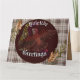 Padrão simples de xadrez vermelho e verde com adorável e charmoso pássaro Tentilhão Roxo e enfeites naturais, ótimo para Espalhar a Alegria Natalina! O texto "Saudações de Natal" pode ser mantido ou personalizado com seu próprio nome ou mensagem para um visual personalizado!