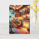Desejando a você um Natal tradicional quente e aconchegante e um Feliz Ano Novo. o texto interno do cartão pode ser personalizado, então você pode adicionar seu nome se quiser ou mudar a saudação. Cozinha antiga e bonitinha cheia de decorações de Natal, coroas de Natal e luzes de Natal.