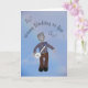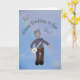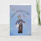 Banjo tocando boneca, com um banjo de brinquedo, cantando "Feliz Aniversário para Você..." com notas musicais flutuando sobre sua cabeça. O fundo é um céu azul com nuvens esbatidas e arco-íris. O texto da dentro diz "Levante o telhado em comemoração". O texto na frente e o dentro podem ser alterados.