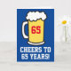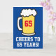 Anima-se a 65 anos com uma caneca de cerveja. Excelente para alguém que comemora seu 65º aniversário. O dentro é vazio para a sua própria mensagem de aniversário. Excelente para um amante de cerveja fazendo sessenta e cinco.