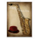 Cartão do dia dos pais do saxofone e do chapéu. Vazio da esquerda para dentro para sua própria mensagem.
