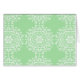 Esta mandala branca senta-se sobre um fundo verde macio. As cores são serenas e criativas. Parte da coleção Losonieth Mandala.