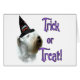 Serão truques ou ameaças neste Halloween? Nosso design de Natal tem sua raça favorita de cachorro, o Sealyham Terrier, vestindo um chapéu de bruxa. Adicione um pouco de 'Hocus Pocus' a All Hallows este ano!