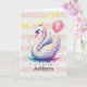 Um belo cartão de aniversário da princesa swan para seu segundo aniversário. Você pode personalizar este cartão de cisne de aniversário com seu nome e idade. Possui cor-de-rosa, ouro e uma princesa cisne bonito com um balão cor-de-rosa na frente. A mensagem da placa dentro também pode ser personalizada se desejada. Um belo cartão de aniversário para filha, neta, etc.